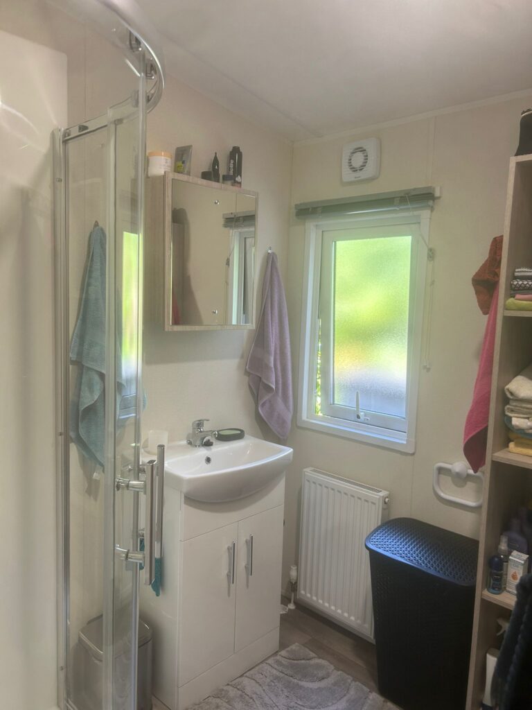 - Badkamer voorzieningen: Douche, wastafelmeubel, toilet