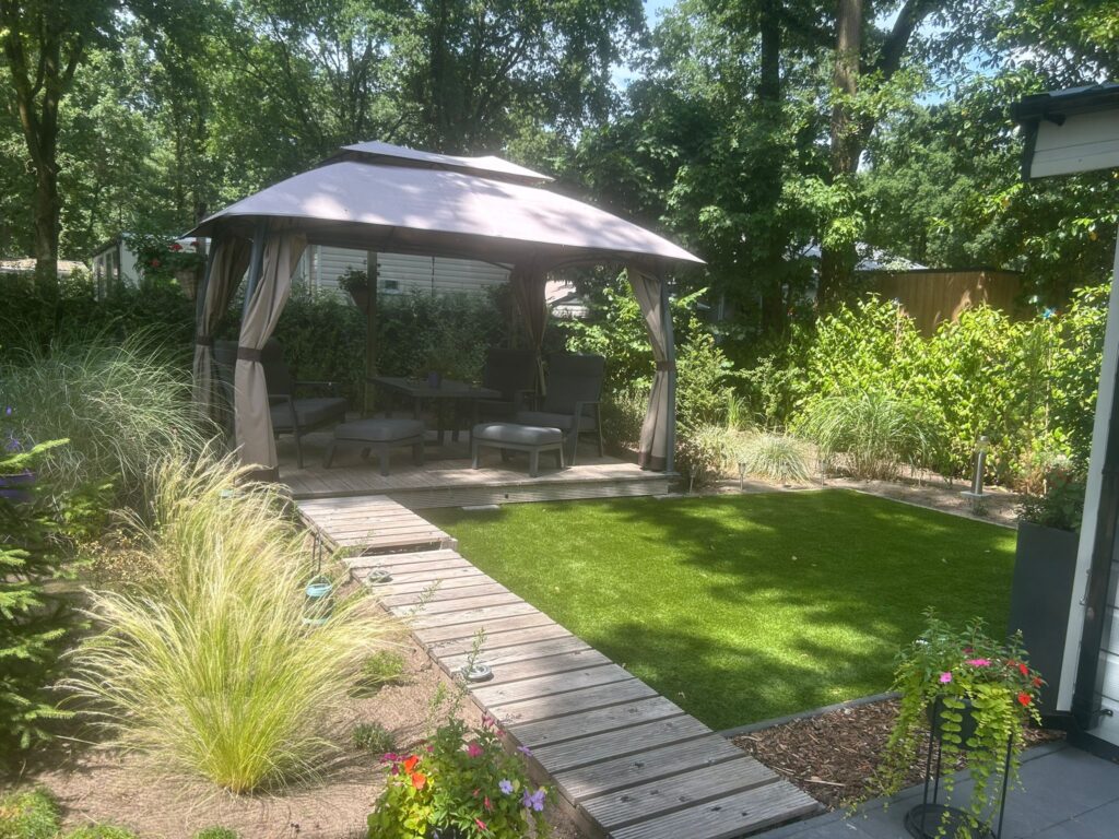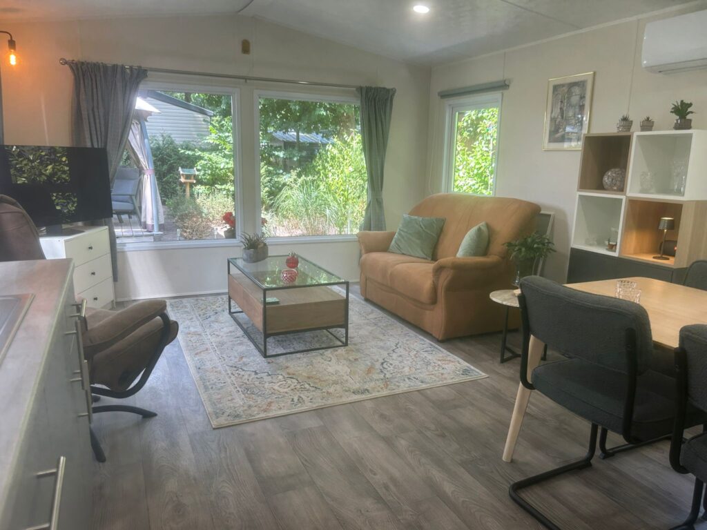 Dit chalet staat op een hele ruime plaats waardoor de tuinliefhebber hier volop kan genieten van de rust, ruimte en natuur. Verder is dit chalet instap klaar. U kunt direct genieten van uw verblijf hier op Resort de Heimolen.