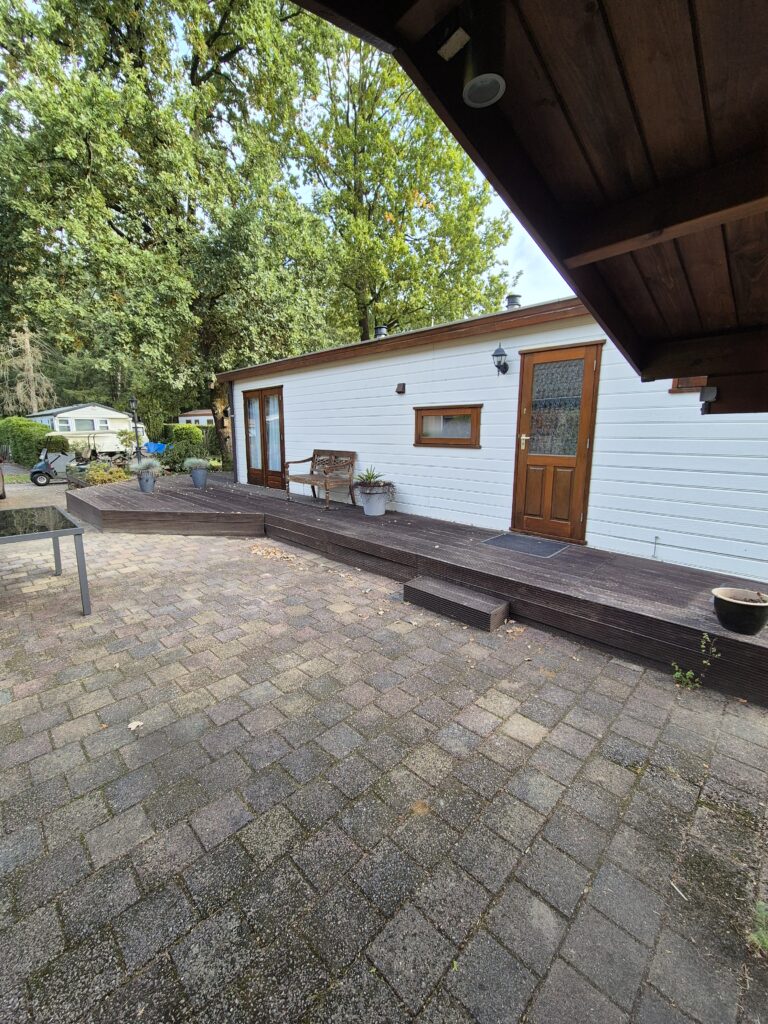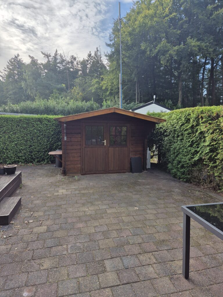 Het chalet staat op een ruim kavel, waardoor er volop mogelijkheden zijn om te ontspannen in de buitenlucht of een eigen sfeervolle tuin te creëren. Daarnaast is er een separate berging aanwezig, ideaal voor extra opslag of het stallen van fietsen en tuingereedschap.