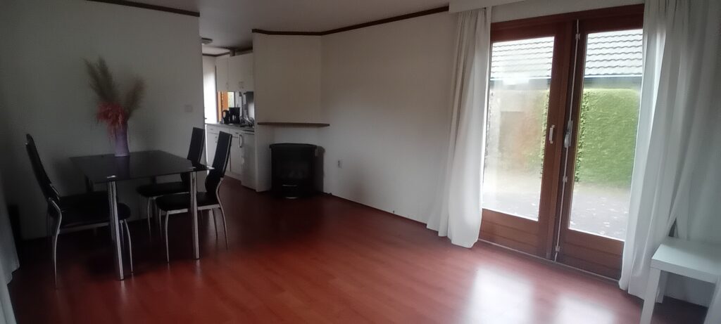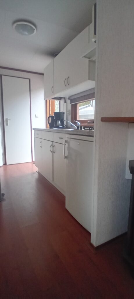De woonruimte is lekker licht en wordt verwarmd door middel van een gashaard, waardoor het ook op koelere dagen aangenaam vertoeven is. De keuken biedt voldoende ruimte en voorzieningen voor dagelijks gebruik.