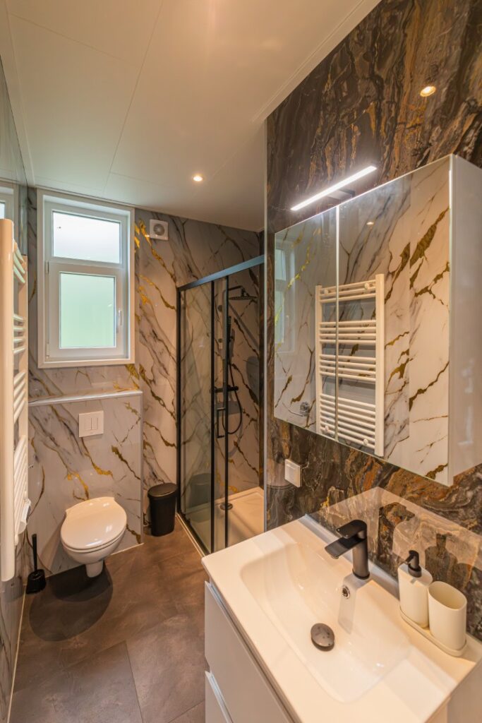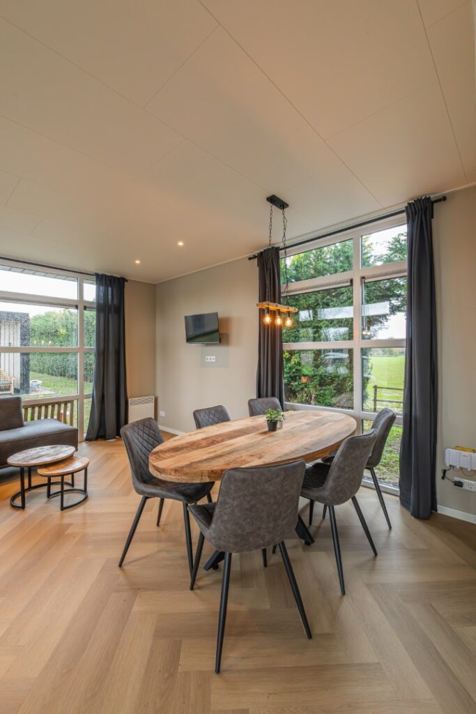 Een prachtig chalet met veel ruimte. De hoge ramen zorgen voor veel lichtinval en de luxe afwerking maakt dat het chalet van binnen en van buiten een mooie uitstraling heeft.