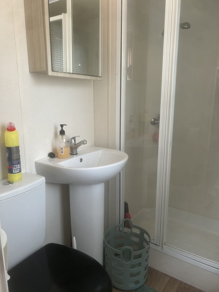 - Badkamer voorzieningen: Douche, wastafelmeubel, toilet