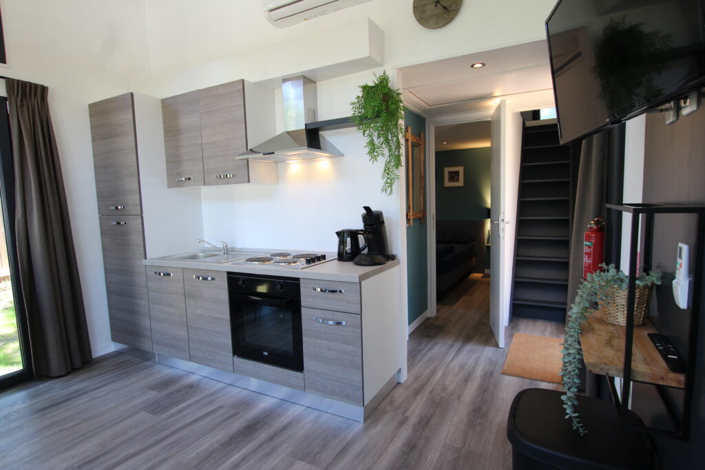 • Keuken voorzieningen: elektrische kookplaat, combi oven, koelkast met vriesvak.