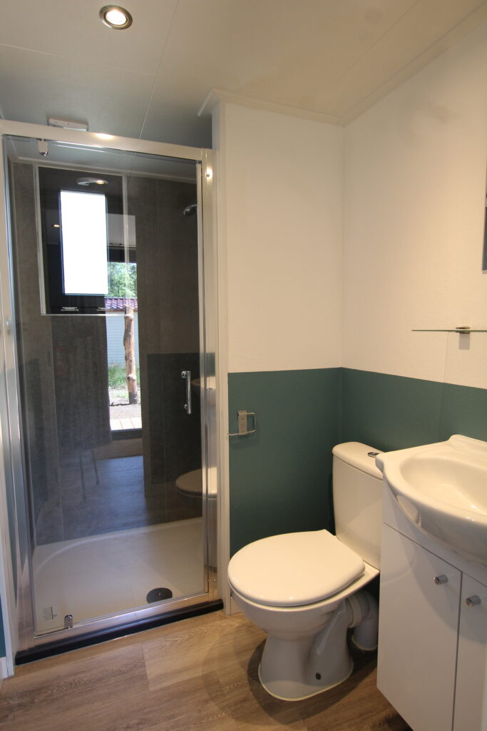 • Badkamer voorzieningen: Badkamer met douche, toilet en wastafel
